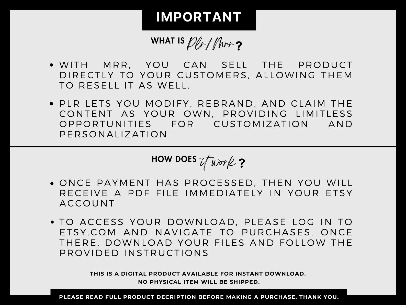 Immediate access upon purchase (no physical products will be shipped)